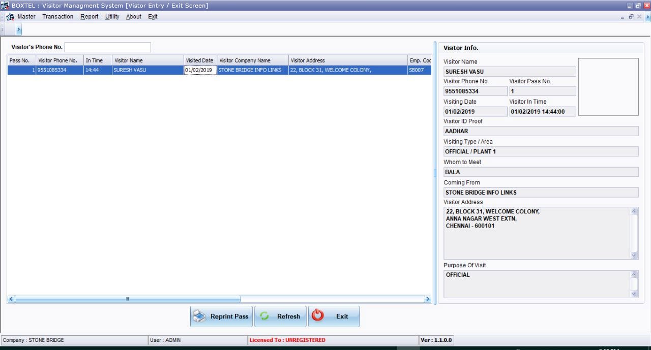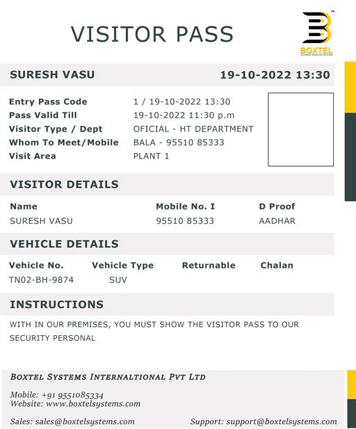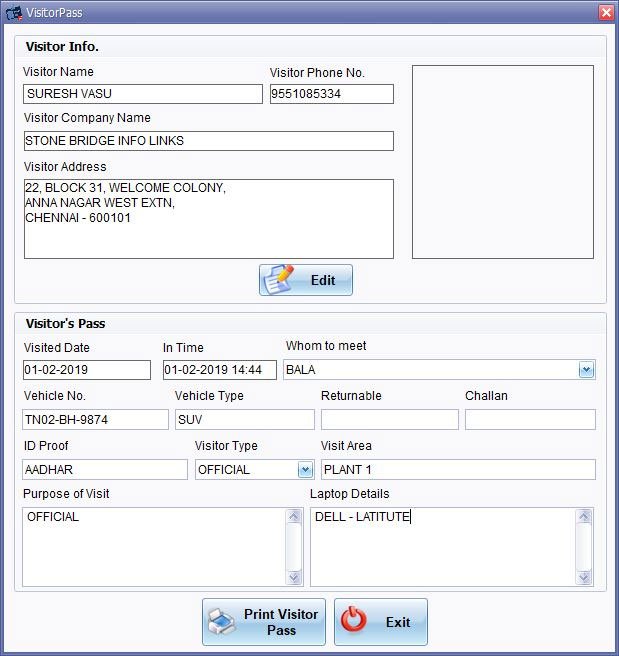 Visitor Management system provides a way to effectively control, record & track your organization's visitor traffic. It helps to prevent the entry of any unauthorized or unwanted person in the premises. The flexible architecture of Visitor Tracker System allows various people in the organization to directly access the data they need. Integrated with various hardwares like web-cam, fingerprint scanner, bar-code scanner & printers. Email/SMS/popup alerts for visitor notification.